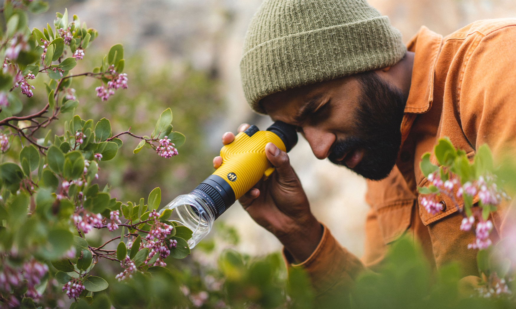 Microscoop die  op monokijker  van NOCs  past.  De microscoop heeft een vergroting van 4x en samen met de monokijker tot 40x zoom.
